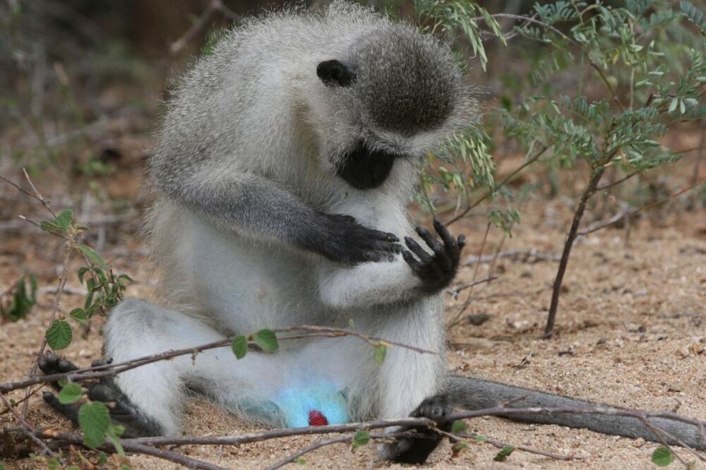 金玉の色がスカイブルーの猿がいる