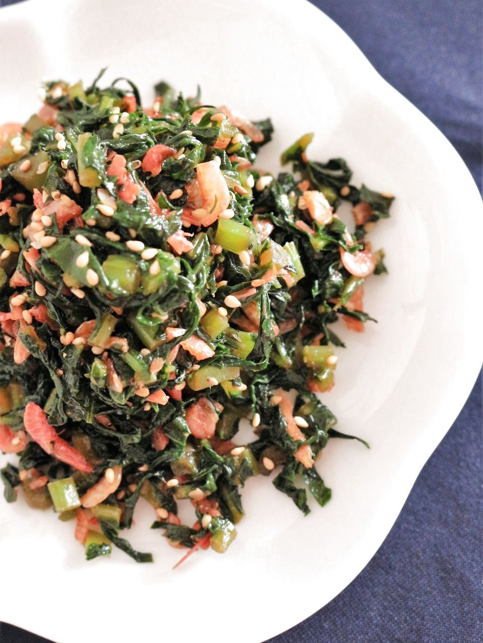 大根の葉っぱをごま油と小エビと一緒に炒めた奴すき