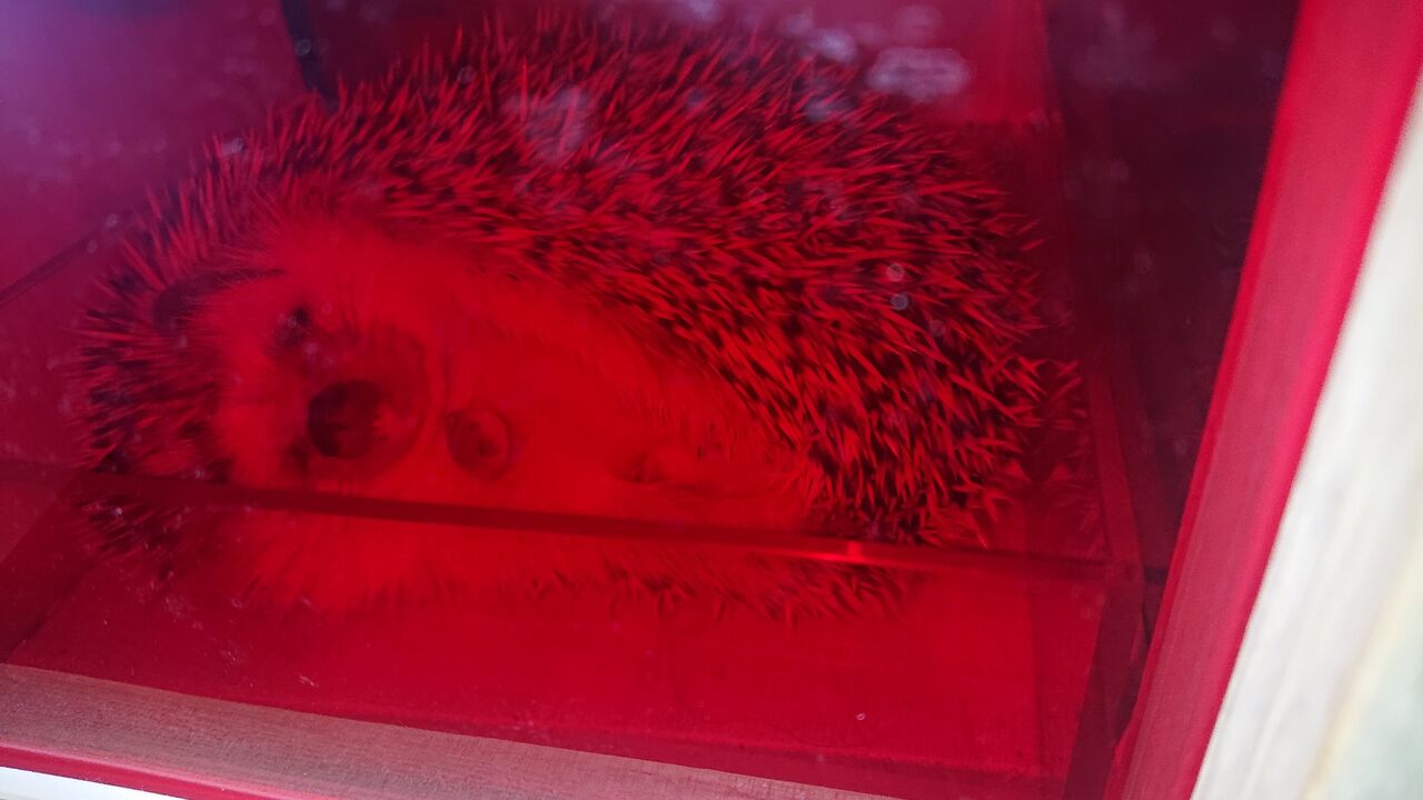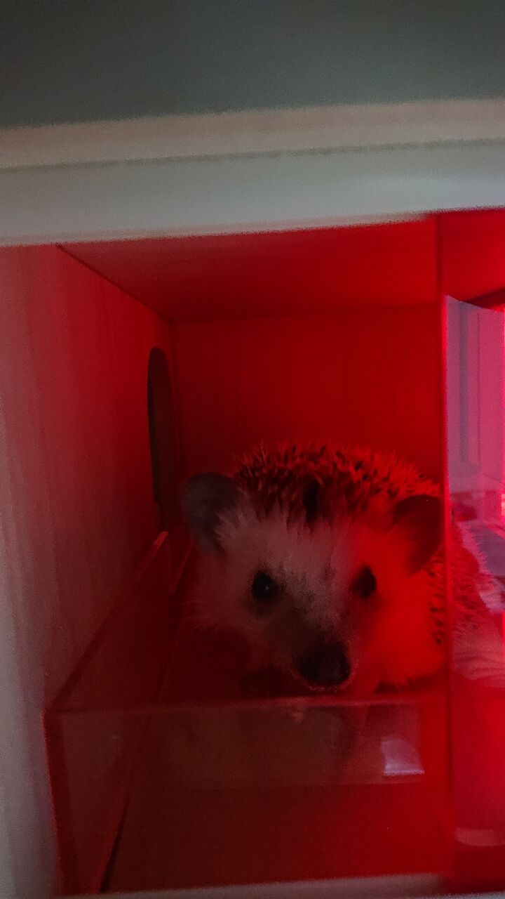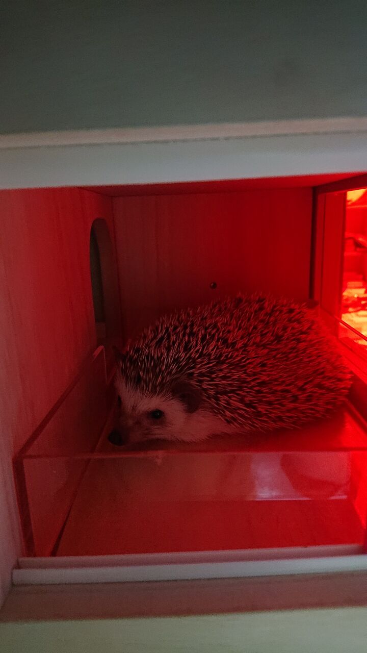 ハリネズミは赤色を認識しづらいから気付かれずに隠れ家のなかを観察できるっていう仕組みのケージ