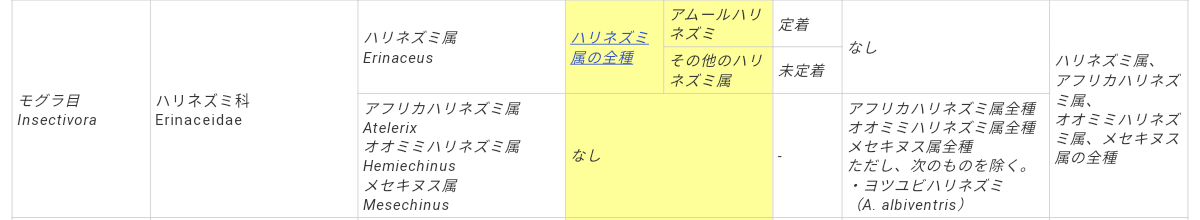 上げた環境省のページだとハリネズミ全種って書いてあるからヨツユビってやつも駄目なんじゃないかな?