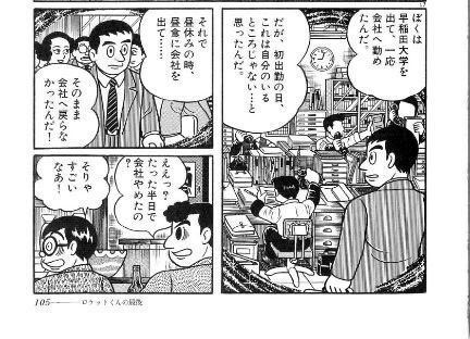 これも作中に出てくるけど園山俊二(ギャートルズの人)は就職初日の昼に黙って家に帰ってそのまま退職したらしい